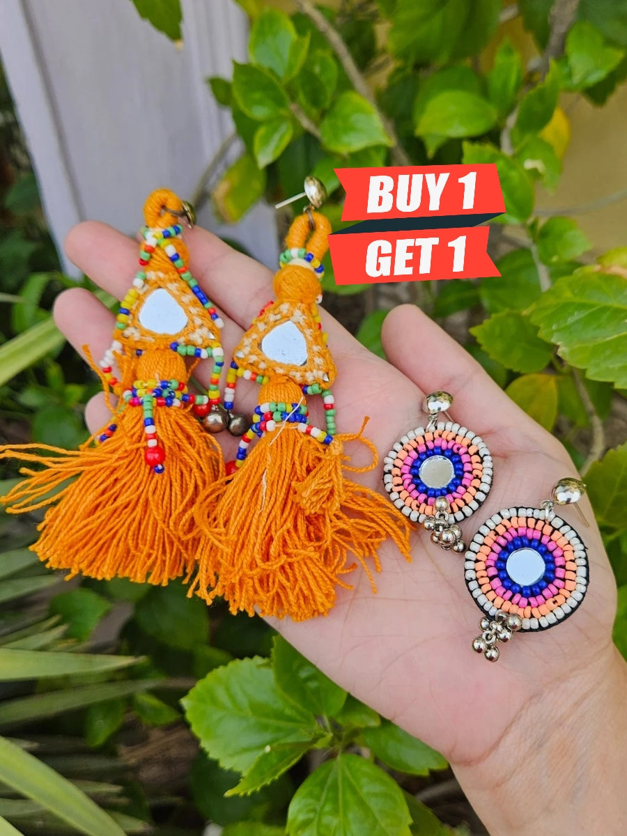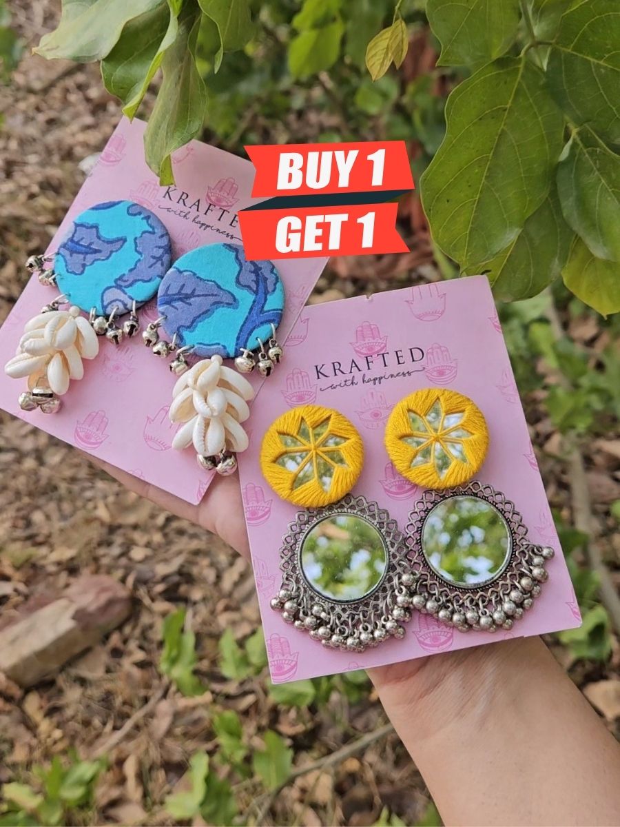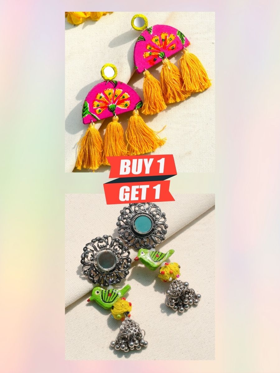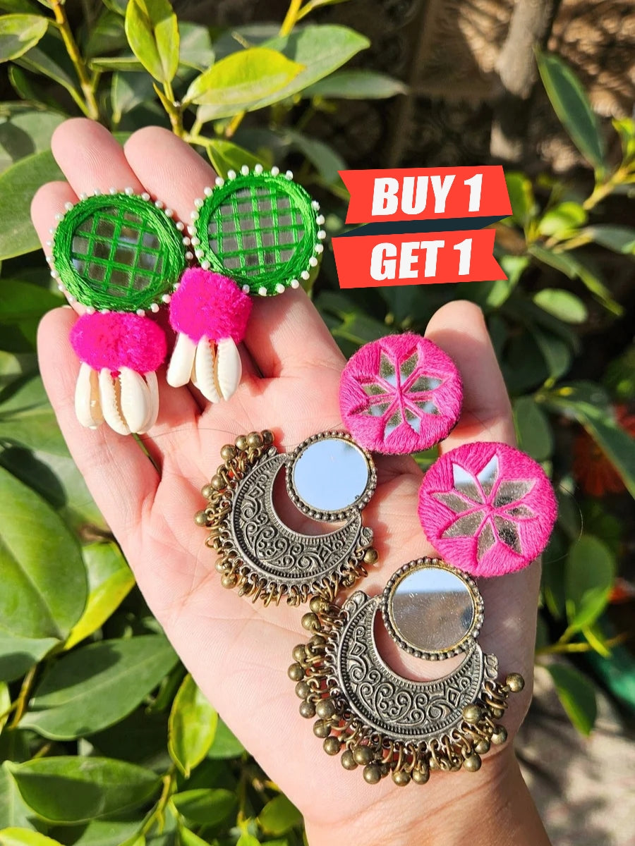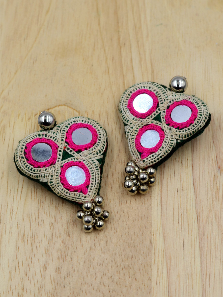 Darpan Mirror Hand-painted + Aaina Bead Ghungroo Earrings (Set of 2)