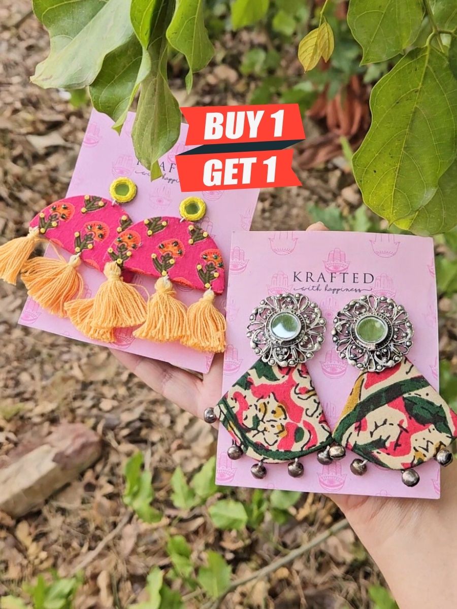 Dabu Jhumkas + Matching Resuable Cotton Mask Set