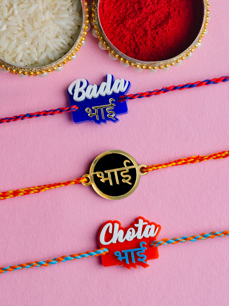 Bada Bhai + Chota Bhai + Bhai Set of 3 Rakhis