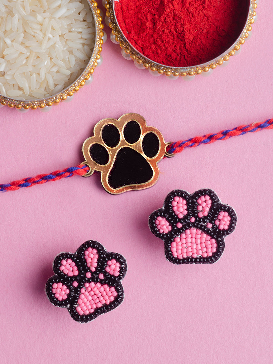 Dog Paw Rakhi + Paw Bead Earrings Combo Set