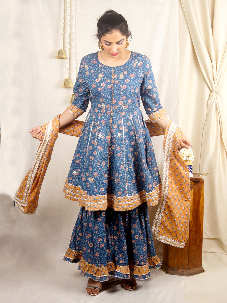 Afsana White & Pink Cotton Sharara Set with Dupatta (Set of 3)